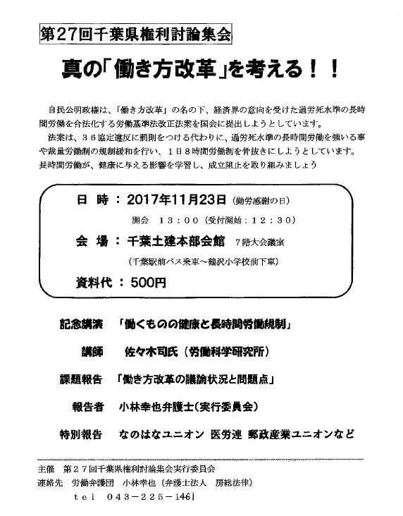 第27回権利討論集会開催!/11月23日午後1時 於:千葉土建本部会館